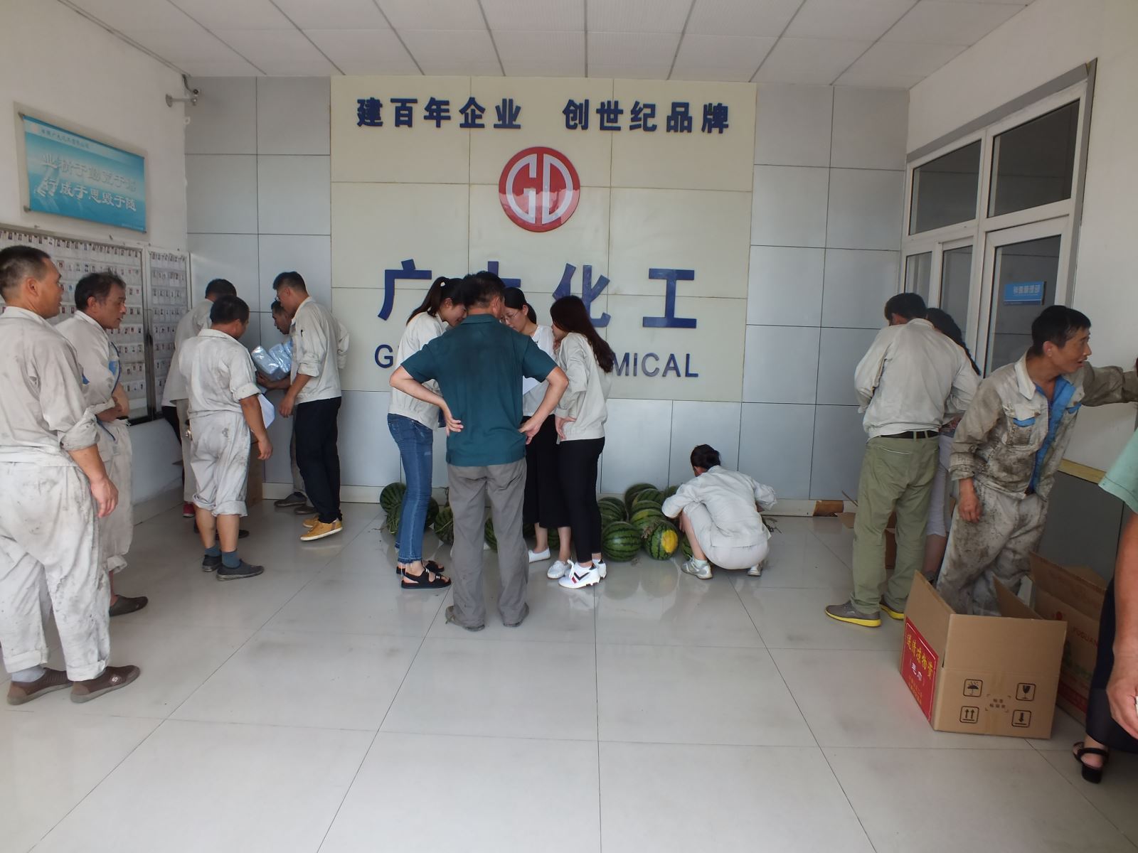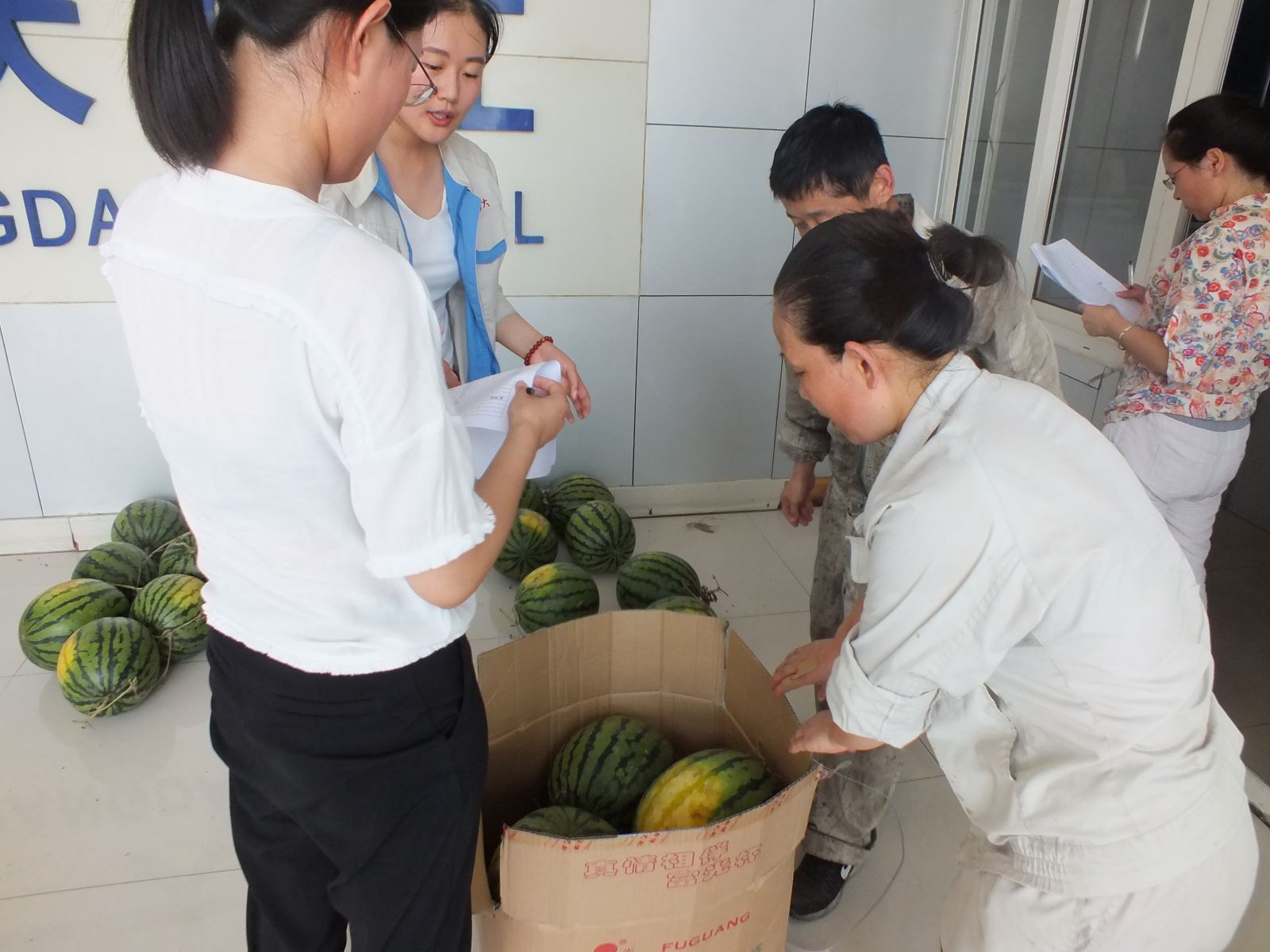 拿起手中的西瓜,每一位員工的臉上都綻放了幸福的笑容,一塊看似不起眼的西瓜,卻因為這里面蘊含著愛的溫度,讓他們忘記了炎熱與勞累,而那一張張笑臉也是對我們此次慰問活動最大的肯定!