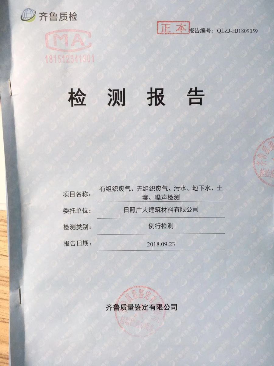 日照廣大建筑材料有限公司第三季度檢測報(bào)告