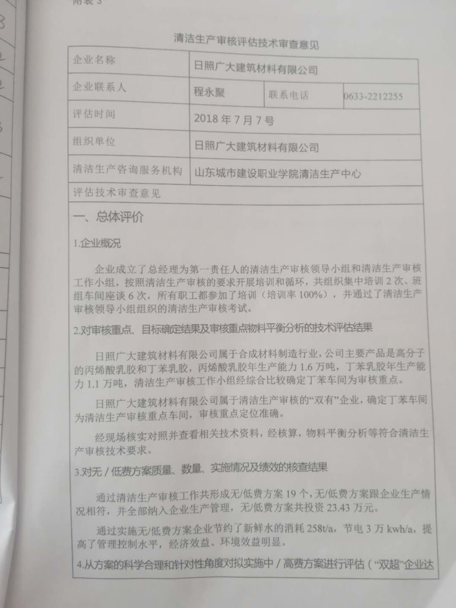 清潔生產(chǎn)審核報告審核結論公開信息