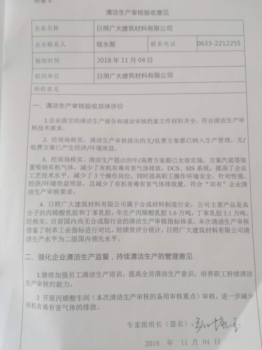 日照廣大建筑材料有限公司,位于風景秀麗的海濱城市山東日照,成立于1988年,是專業(yè)生產(chǎn)高分子化工產(chǎn)品,集科研開發(fā)、生產(chǎn)經(jīng)營為一體的化工企業(yè),主要產(chǎn)品為丙烯酸脂類乳液和丁苯膠乳。是國內(nèi)目前江北同行業(yè)產(chǎn)銷量最大企業(yè)之一。